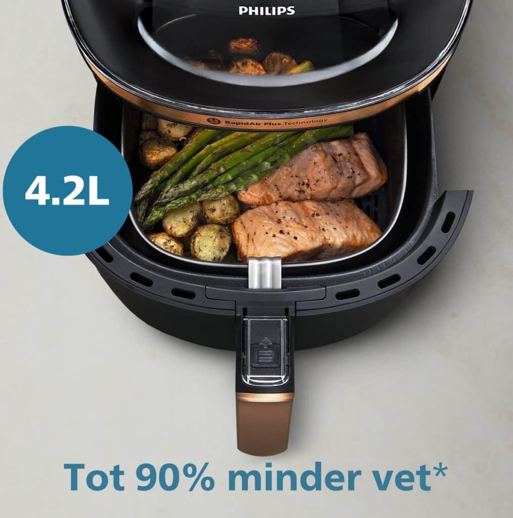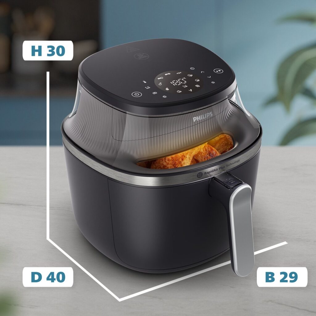 Dankzij de unieke RapidAir Plus-technologie blijft elk gerecht sappig van binnen en krokant van buiten. Het resultaat? Perfect gebakken frietjes, malse kipdrumsticks of knapperige groenten – keer op keer. Geen olie nodig, maar wél de smaak waar je naar verlangt.