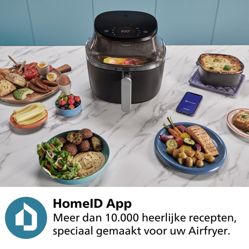 Of je nu een gezond ontbijt maakt, een snelle lunch of een uitgebreid diner: met een inhoud van 4,2 liter bereid je in één sessie tot 800 gram groenten, 6 kipdrumsticks of 5 muffins. En met de geïntegreerde HomeID-app heb je toegang tot eindeloze inspirerende recepten die je stapsgewijs begeleiden tot perfecte einderesultaten.