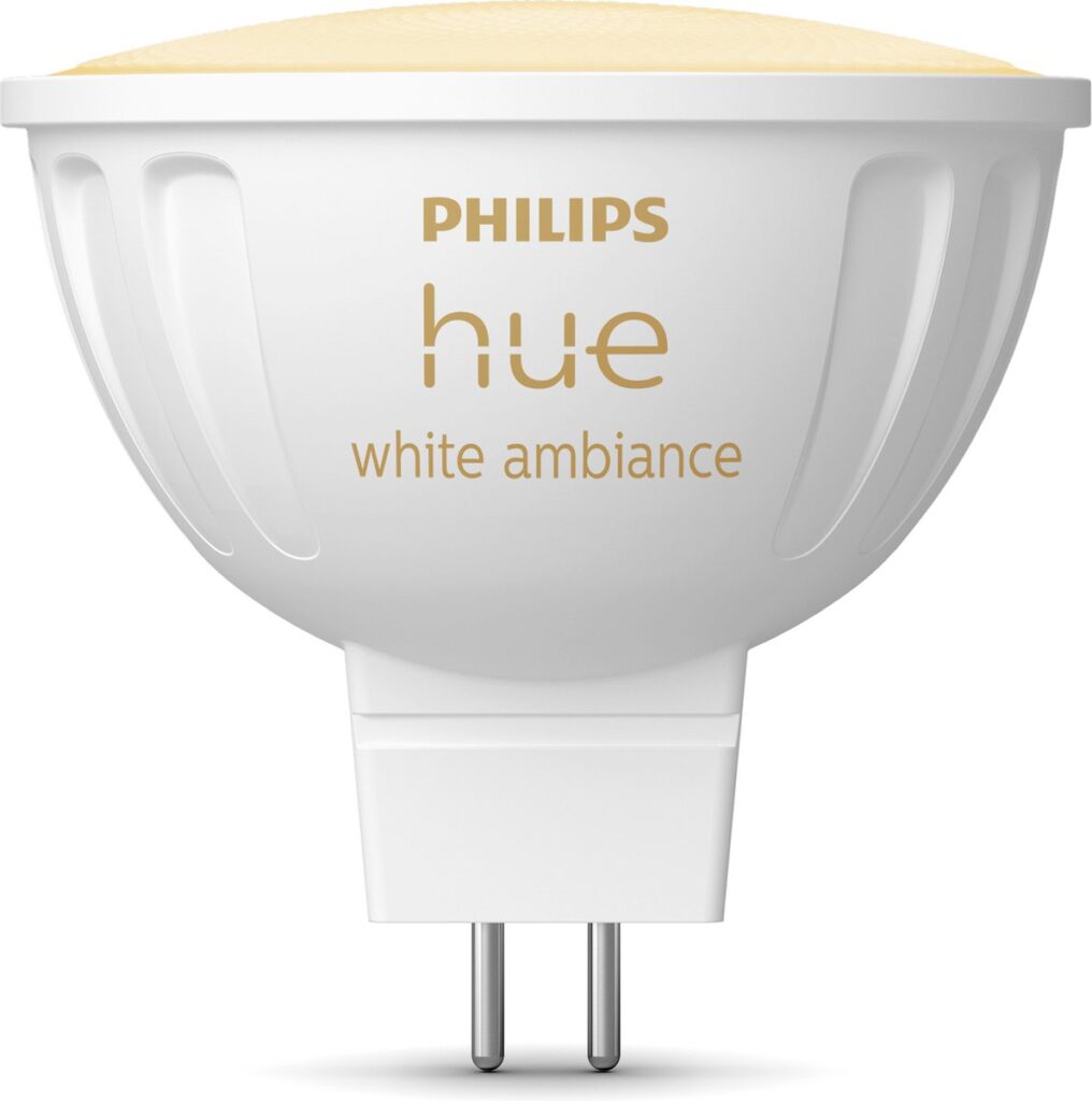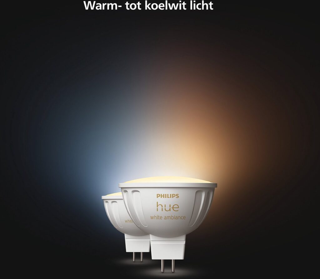 Verlicht je woning met warmwit tot koel daglicht met deze slimme LED-spot met MR16-fitting. Met deze Philips Hue White ambiance spot heb je dankzij de 50.000 wittinten altijd het juiste licht om te ontspannen, te concentreren, te lezen of energie op te doen. Het 12 Volt, 2 pins ontwerp past perfect in de meeste fittingen, waardoor je je traditionele lamp gemakkelijk een-op-een kunt verwisselen zonder de transformator te vervangen. Je kunt de lamp eenvoudig in- en uitschakelen, dimmen of een van de voorgeprogrammeerde lichtrecepten selecteren met de Philips Hue app op je smartphone of tablet. Wanneer je verbinding maakt met de Hue Bridge krijg je toegang tot alle beschikbare slimme verlichtingsfuncties, zoals het personaliseren van lichtscènes, het instellen van timers en nog veel meer.