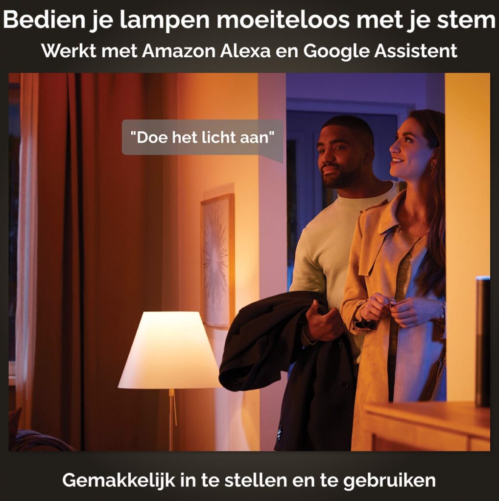 Bedien je lampen handsfree en gebruik je stem in plaats van een mobiel apparaat! Met eenvoudige spraakopdrachten kun je meerdere lampen of slechts één lamp in een kamer bedienen. Werkt samen met Alexa, Google Assistent of Siri.