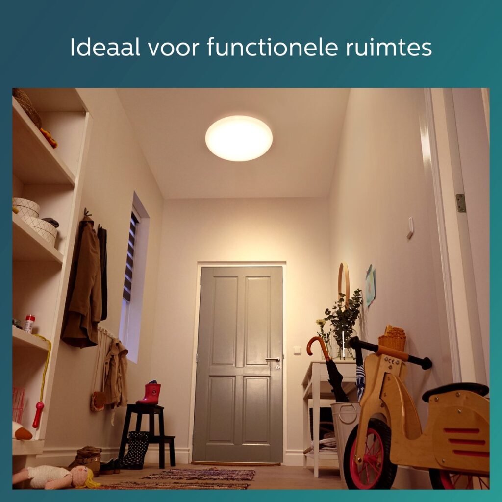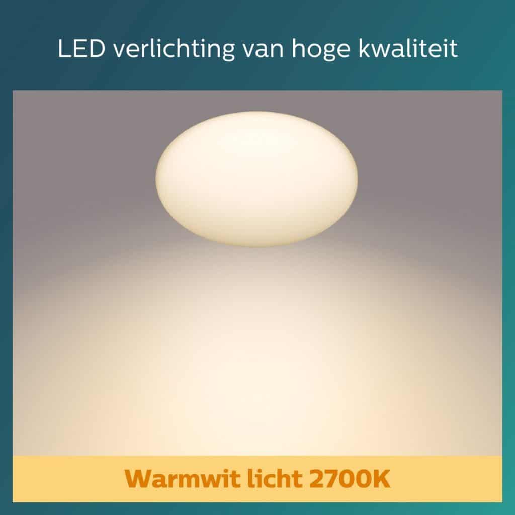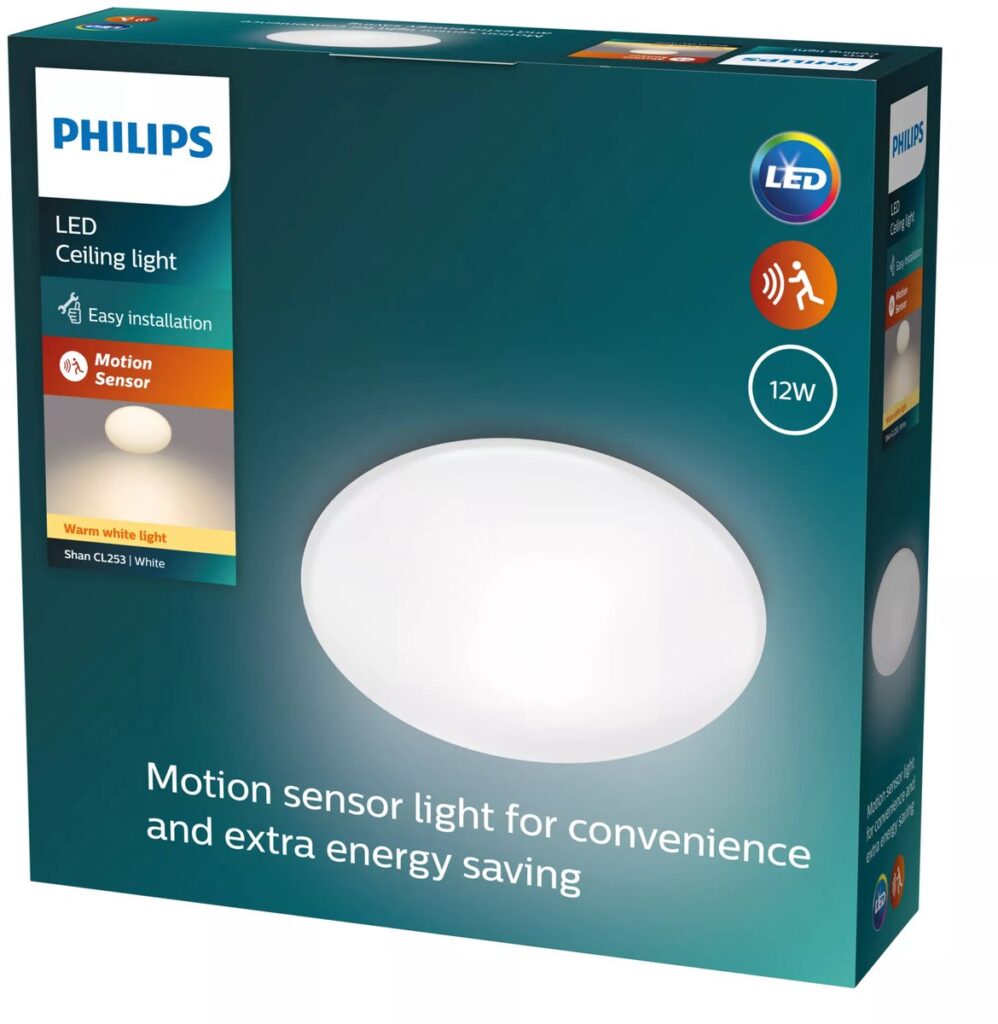De Philips Shan 12 W LED-plafondlamp schakelt automatisch in of uit via de geïntegreerde bewegingssensor. Daardoor kun je kamers in- en uitlopen zonder de schakelaar te hoeven gebruiken en brandt het licht alleen als je het nodig hebt. Dat betekent meer gemak en een lagere energierekening. Deze wand- en plafondlamp is vooral handig voor ruimtes waar je maar even licht nodig hebt zoals gang, overloop, kelder en bijkeuken. Maar ook voor ruimtes zoals een berging, garage of schuurtje, waar je de schakelaar soms niet kunt bedienen als je binnenloopt met je handen vol. De LED-lamp brandt onmiddellijk met warmwit licht (2700 K) en heeft levensduur tot 20 jaar.