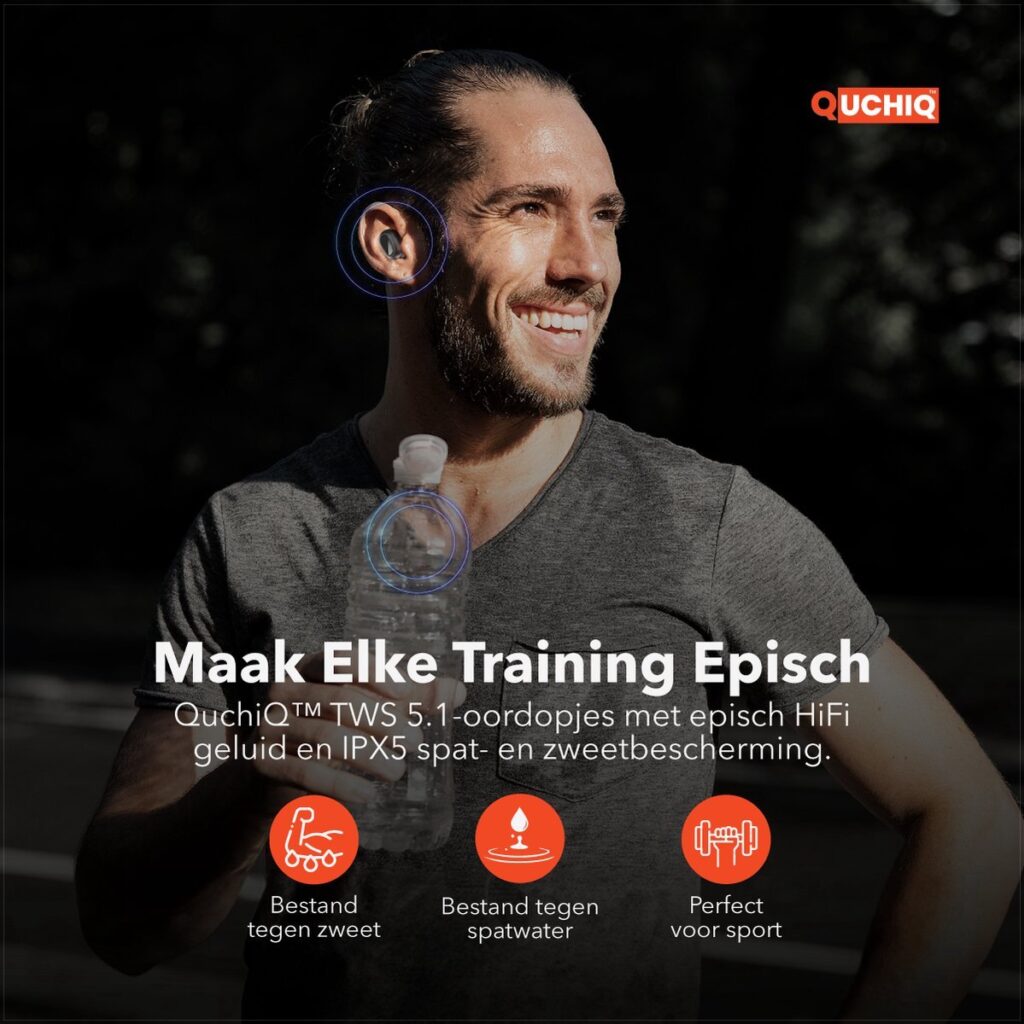 QuchiQ™ Draadloze Bluetooth Oordopjes – Wireless Sport Earphones met Extra Bass, Noise Cancelling