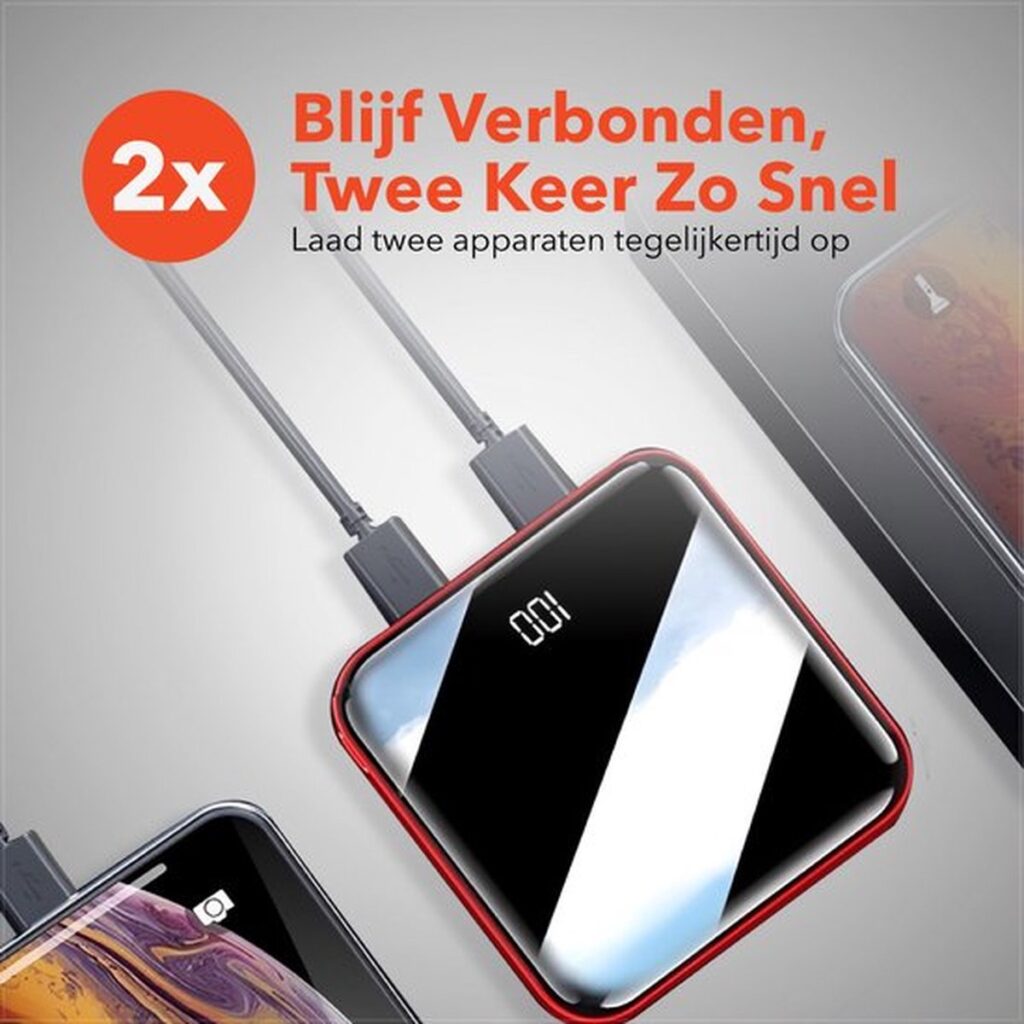 Hoe vaak heb je al niet meegemaakt dat je telefoon of tablet nét leeg raakt op het moment dat je hem het hardst nodig hebt? Met de mini powerbank hoef je je daar nooit meer zorgen over te maken. Dankzij een indrukwekkende capaciteit kan je niet alleen één, maar zelfs twee apparaten tegelijk opladen.