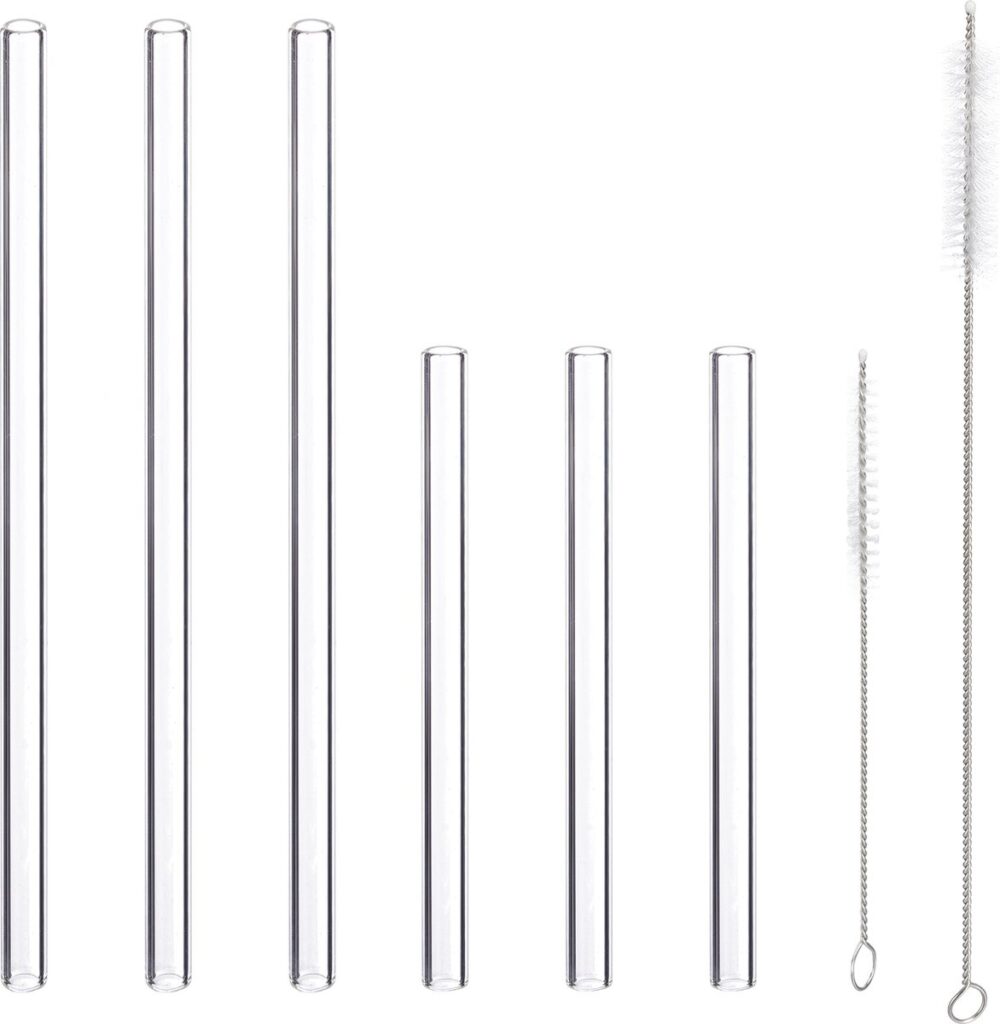 – 6x Glazen rietjes (6x kort, 6x lang of 3x kort/3x lang)