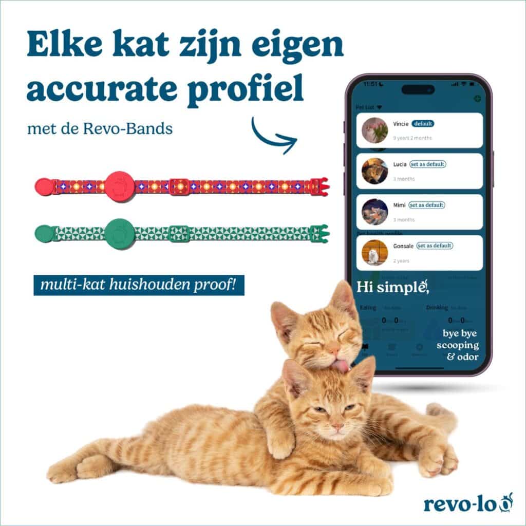 Geen probleem: met de extra kattenbandjes met een ingebouwd identificatie systeem weet jij precies wie wanneer in de Revo-oo one is!