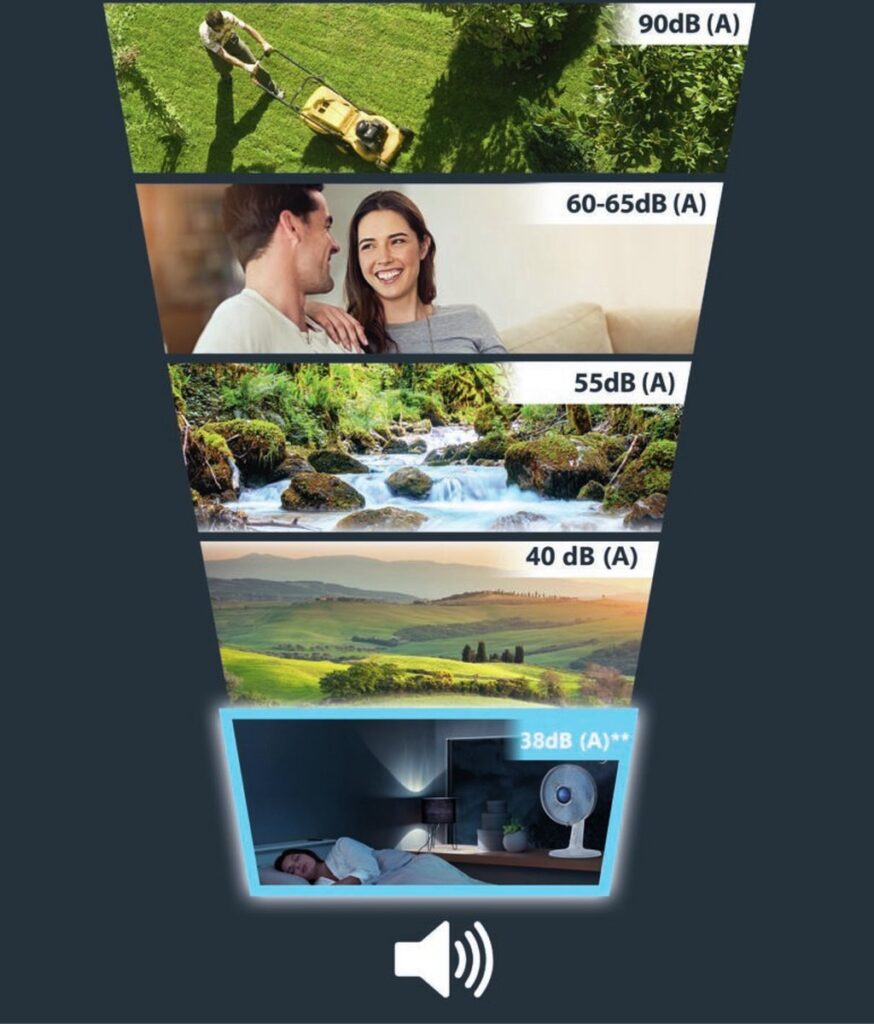 Ervaar verfrissing in stilte dankzij Rowenta’s meest stille ventilator ooit* (2 keer zo stil als het vorige model: VU2630F0)— hij produceert maar 38 dB(A) aan geluid op minimale snelheid; ideaal voor wanneer je slaapt, tv kijkt, werkt of aan het studeren bent.