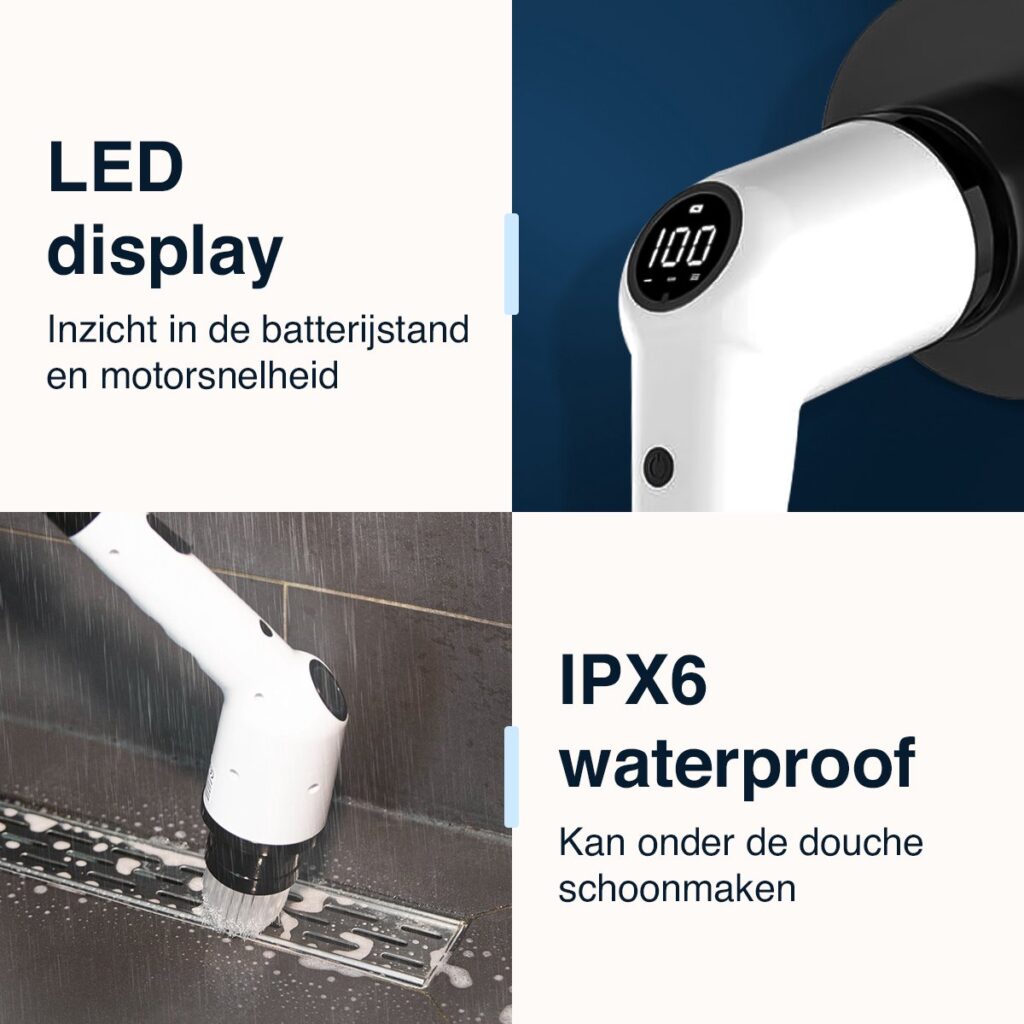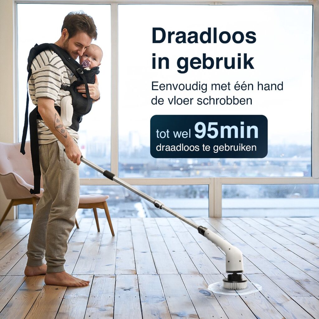 De Schrobborstel NanoPro heeft een galant design en betrouwbare prestaties. Zo is de schrobborstel een investering die zichzelf terugbetaalt door jarenlang consistent gebruik. Je hoeft geen doeken of sponsjes meer te kopen die na één keer gebruiken alweer versleten zijn. Deze spinscrubber biedt dankzij zijn diverse opzetstukken alles-in-één reinigings gemak, waardoor je voor elk oppervlak de juiste tool bij de hand hebt.