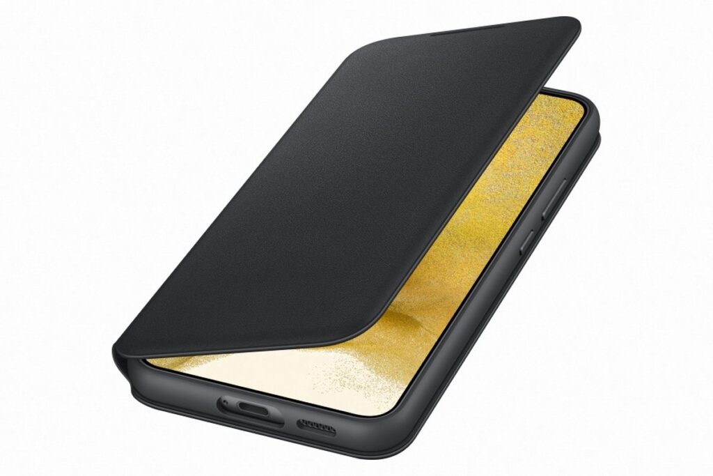 klik je vast aan de achterzijde en heeft aan de voorkant een flipcover, zodat je