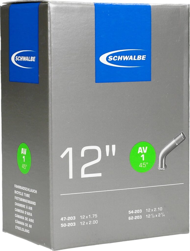 De Schwalbe binnenband 12 x 1.75/2.10 inch (47/62-203) is een betrouwbare keuze voor kinderfietsen, buggy’s of kleine vouwfietsen. Deze binnenband is geschikt voor banden met een ETRTO-maat van 47 tot 62 mm breed op een velgdiameter van 203 mm. De binnenband is uitgerust met een autoventiel (AV) van 40 mm, wat zorgt voor eenvoudig oppompen bij elk tankstation of met standaard fietspompen met autoventiel aansluiting.