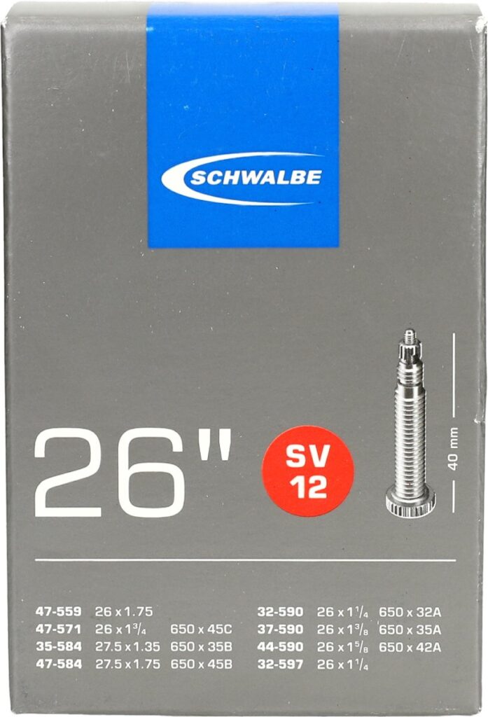 – 1x Schwalbe Binnenband – SV12 – 26 inch x 1 1/4 – 27.5 inch x 1.75 – Frans Ventiel – 40mm