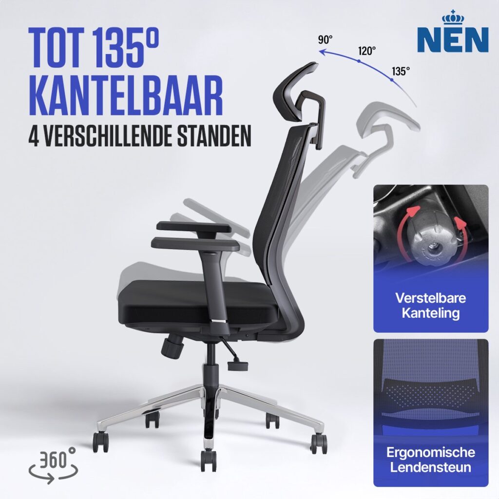 De Stane ergonomische bureaustoel is volledig aan te passen naar jouw perfecte zithouding. Met de lendensteun die in hoogte verstelbaar is, de 3D armsteunen, de verstelbare neksteun en de 4 lock standen waarop je de rugleuning kunt vastzetten, is de ergonomische bureaustoel van STANE de beste NEN-EN 1335 gecertificeerde ergonomische stoel voor thuis of kantoor.