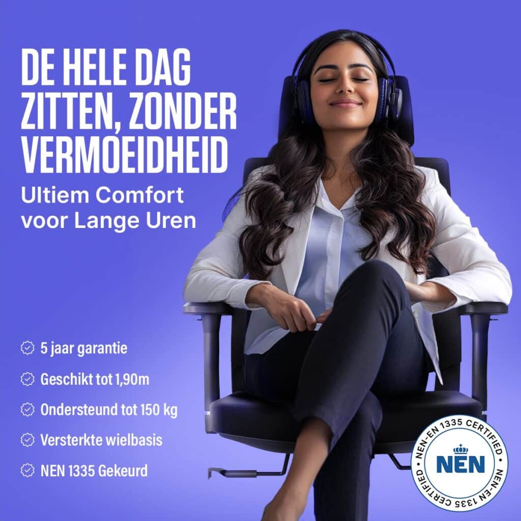 STANE PREMIUM ERGONOMISCHE BUREAUSTOEL – MET COMFORTABELE SCHUIMZITTING Werk jij lange dagen aan je bureau en wil je rug- en nekklachten voorkomen? De Stane Premium bureaustoel is ontworpen voor ultiem zitcomfort, perfecte ondersteuning en een stijlvolle uitstraling. Dankzij de hoogwaardige schuimzitting zit je zelfs na uren nog comfortabel en ontspannen. Deze stoel is volledig verstelbaar: van armleuningen tot rugleuning, zithoogte en lendensteun – alles is af te stemmen op jouw lichaam en werkhouding. Of je nu thuiswerkt of op kantoor zit, deze stoel past zich aan jouw dag aan. Waarom kiezen voor de Stane Premium? * Ergonomisch design: Voorkomt lichamelijke klachten en ondersteunt je natuurlijke houding * Zitting met hoogwaardig schuim: Voor langdurig zitcomfort zonder in te zakken * Volledig verstelbaar: Pas rugleuning, armleuningen, hoogte en lendensteun eenvoudig aan * Stijlvol en strak design: Past perfect in elke moderne werkplek * Stevig en duurzaam: Gemaakt van kwaliteitsmaterialen voor dagelijks intensief gebruik * 5 jaar garantie: Zekerheid van langdurig comfort en ondersteuning Of je nu 2 uur werkt of 10, de Stane Premium bureaustoel zorgt ervoor dat je dag comfortabel blijft. Investeer in je werkhouding, verhoog je focus en voel het verschil. Bestel nu en maak van elke werkdag een comfortabele dag!