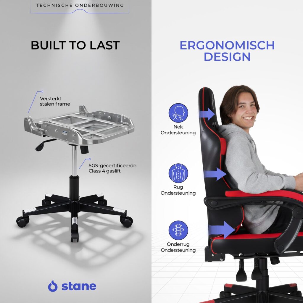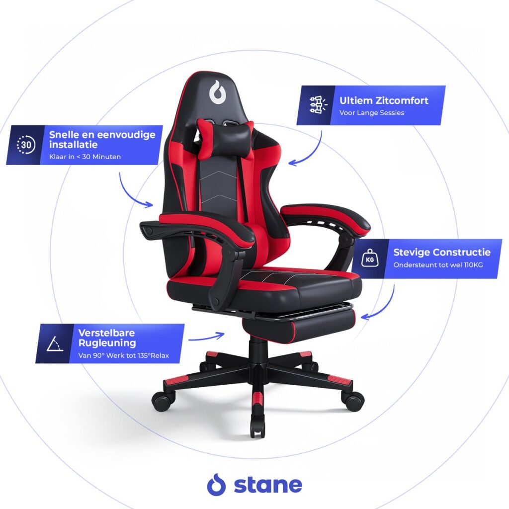 Focus, comfort en totale controle – precies wat je eist tijdens lange game- of werksessies. Deze Stane-gamestoel combineert een sportieve kuipvorm met dikke, ondersteunende padding en slimme details voor maximale performance.