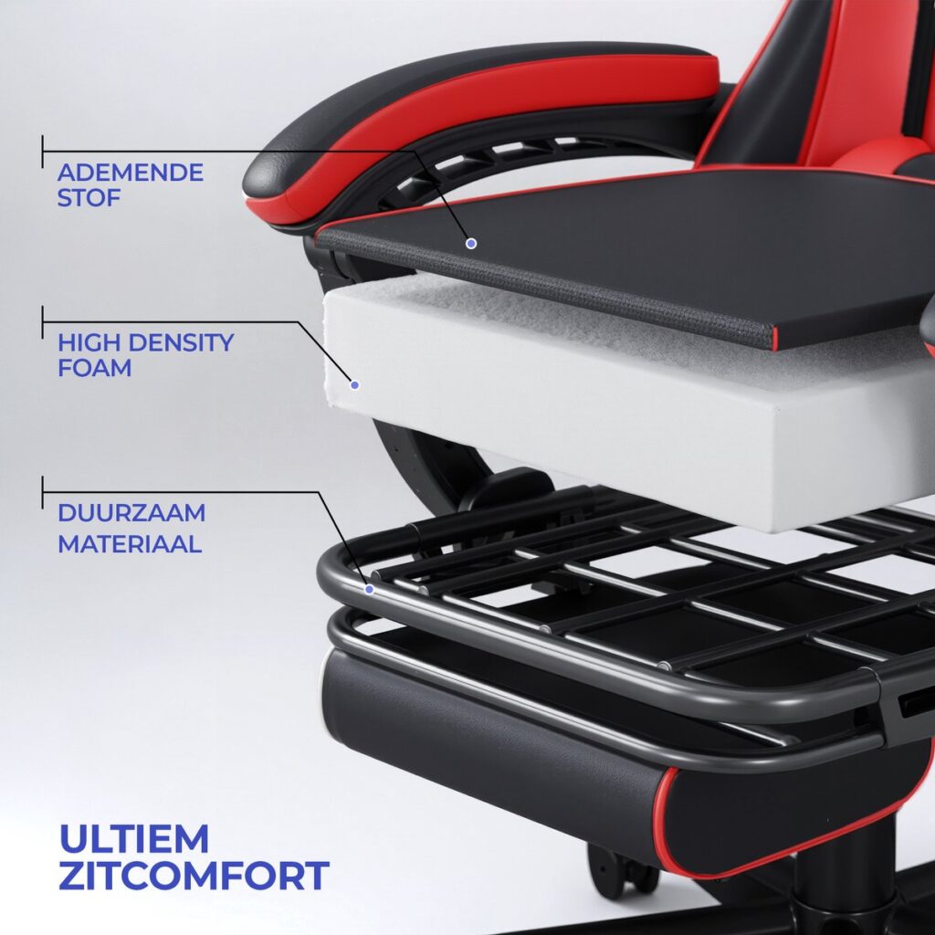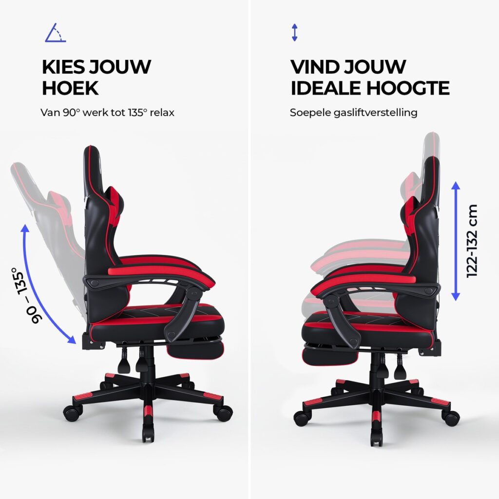 Klaar voor een pauze? Schuif de geïntegreerde voetensteun uit, kantel de stoel achterover en laad jezelf op. Het onderhoudsvriendelijke materiaal en de robuuste bouw maken dit de laatste stoel die je nodig hebt voor je setup – perfect voor gamen, werken of studeren.