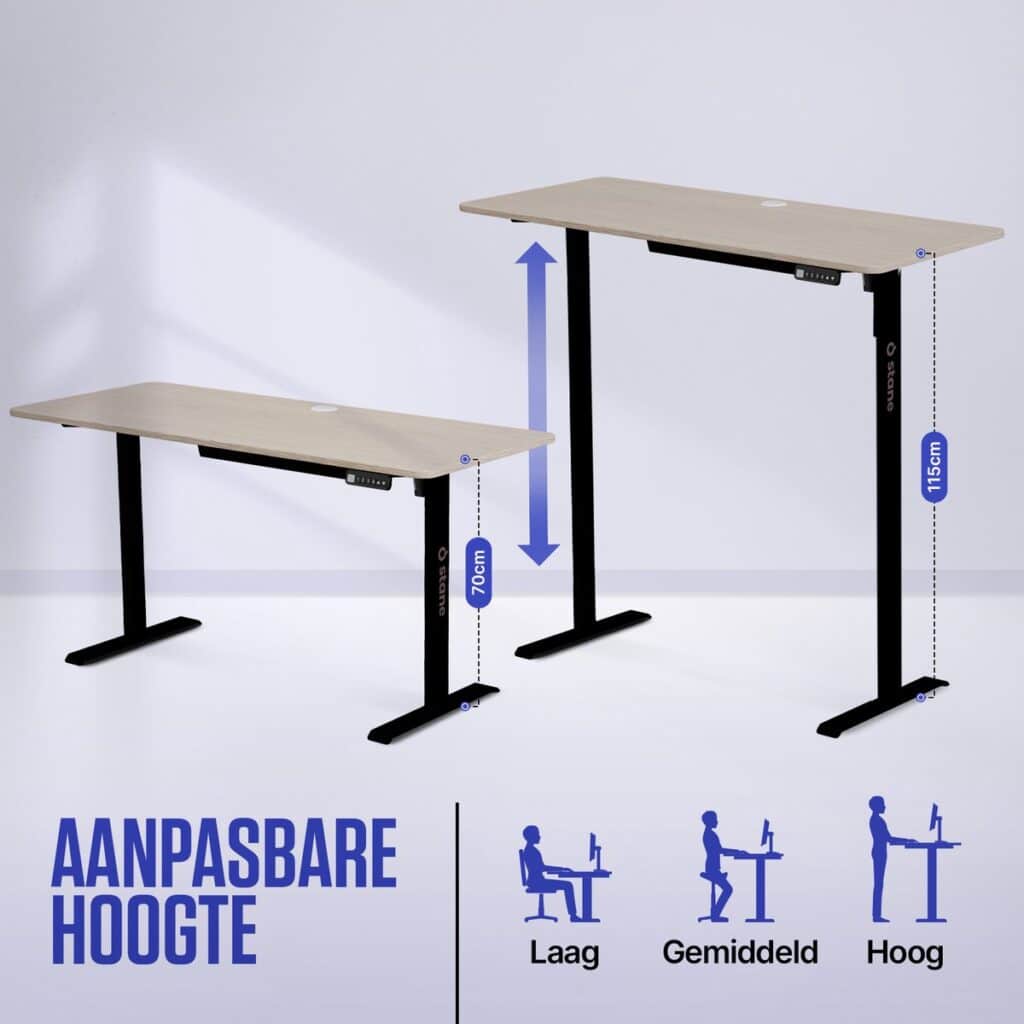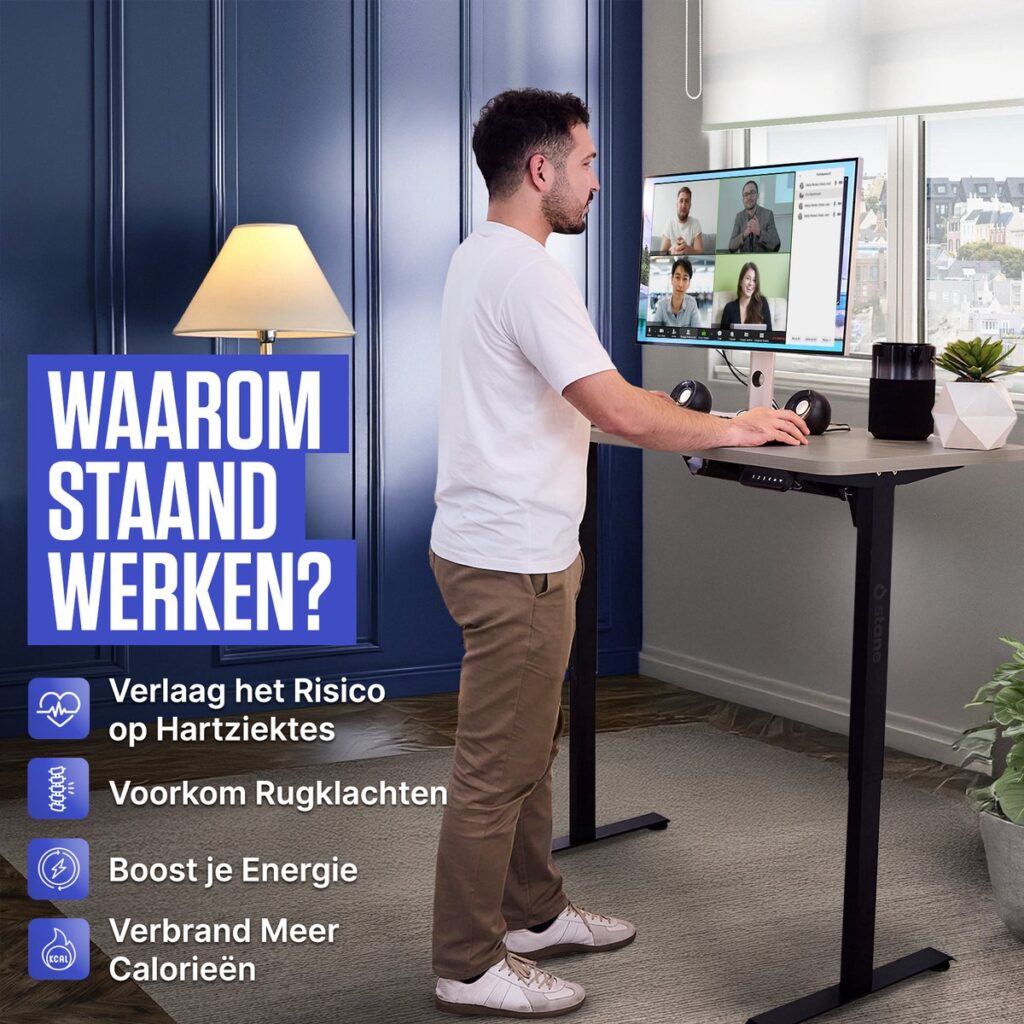 Dit bureau is ideaal voor iedereen die waarde hecht aan een gezonde werkhouding. Perfect voor thuiswerkers, gamers, of voor op kantoor. Het biedt de flexibiliteit om gedurende de dag van werkhouding te veranderen, wat bijdraagt aan een actieve levensstijl.