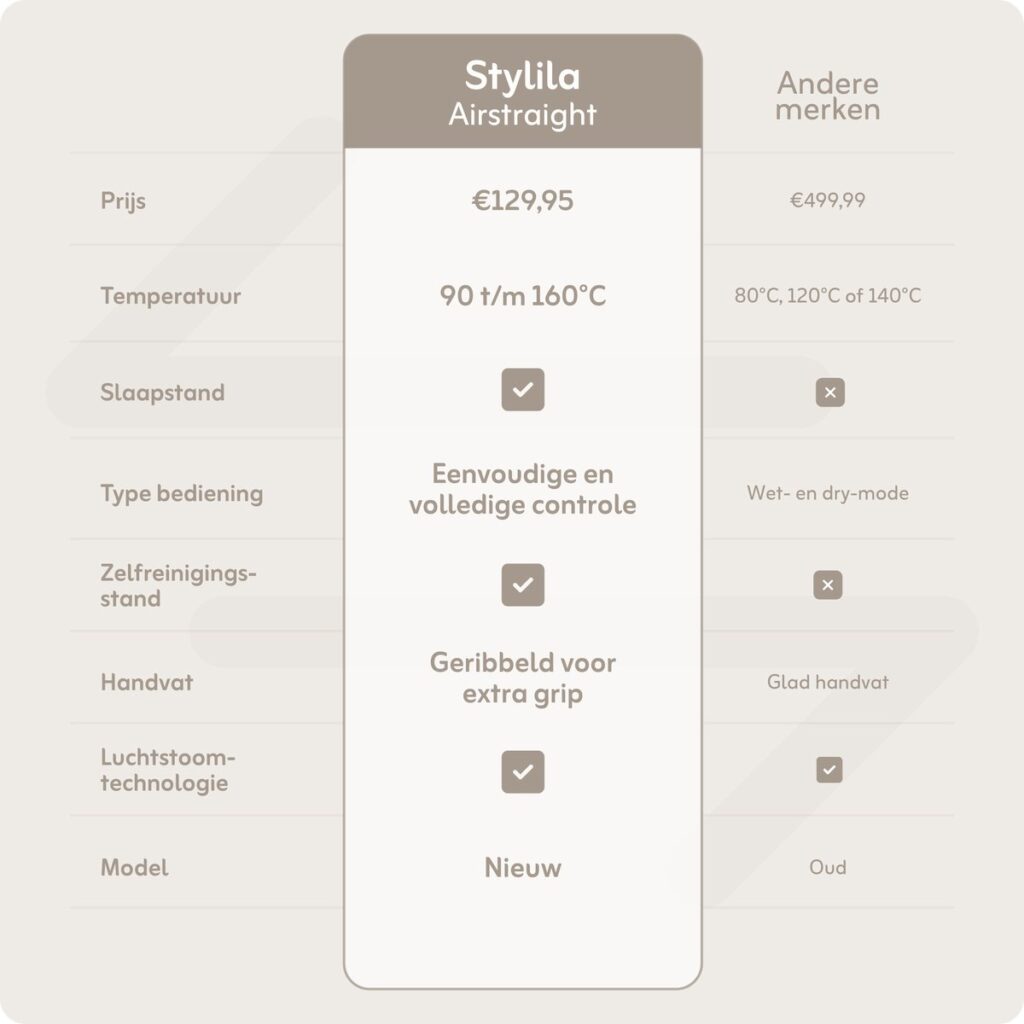 De Stylila Airstraight gebruikt dezelfde luchtstroomtechnologie als de bekende concurrent en levert exact dezelfde resultaten – zonder het premium prijskaartje.