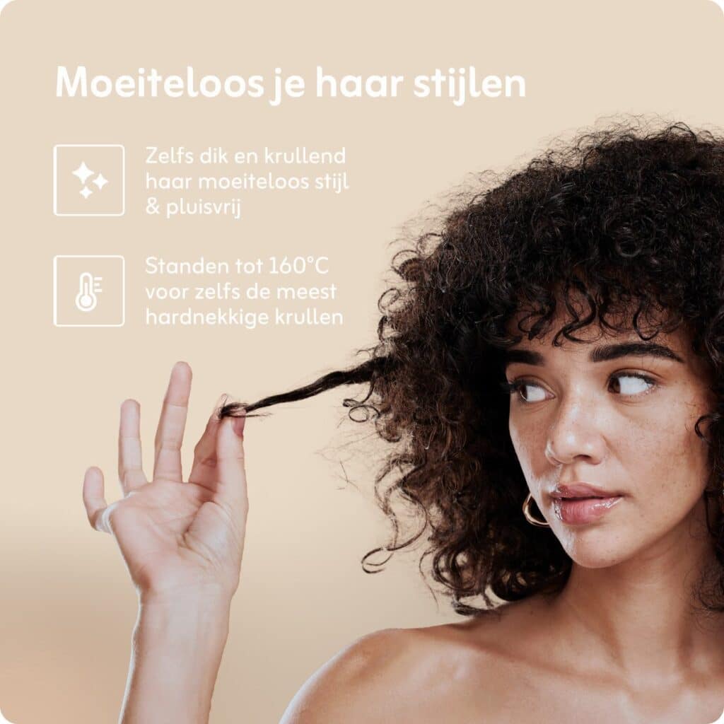 Wil je moeiteloos föhnen, krullen, stijlen en volume creëren – met één compacte tool? De Stylila 8-in-1 Airstyler biedt alles wat je nodig hebt voor een professioneel resultaat, gewoon bij jou thuis. Dankzij de krachtige motor, slimme technologie en 8 verwisselbare opzetstukken, is deze multistyler dé ideale keuze voor elk haartype – of je nu dik, dun, steil of krullend haar hebt. Waarom kiezen voor Stylila? * 110.000 RPM motor voor snelle, professionele styling. * Coanda effect voor moeiteloos krullen zonder hittebeschadiging. * 8 opzetstukken inclusief twee airstylers 30mm (links en rechts), volumeborstel en concentrator. * Coldshot-functie voor krullen die langer in model blijven. * Ionentechnologie voor pluisvrij, glanzend haar. * Anti-klit technologie voor pijnloos wrappen. * 3 blaassnelheden voor volledige controle. * Temperatuurstanden: 3 standen (60°C, 90°C, 120°C). * Exclusieve stylingtips en onderhoudsgidsen direct in je inbox. * Roterend snoer van 2,8 meter voor flexibiliteit tijdens styling * Snelle opwarmtijd voor direct gebruik * Geschikt voor alle haartypes of je nu steil, krullend, fijn of dik haar hebt * Geen schade door intelligente warmtecontrole ALLES WAT JE NODIG HEBT IN ÉÉN STIJLVOLLE TOOL Met 8 veelzijdige opzetstukken style je jouw haar precies zoals jij het wilt: * 30mm airstyler voor strakke krullen, ideaal voor korter haar. * 40mm airstyler (NEW) voor losse, volumineuze krullen bij langer haar. * Föhnopzetstuk voor snel en gelijkmatig drogen. * Diffuserkop voor het creëren van natuurlijk volume en definitie bij krullend haar. * Harde volumeborstel voor een volle, luchtige blowout. * Gladmakende borstel voor een glanzende, steile look zonder pluis. * Smalle volumeborstel voor gerichte volumecreatie bij fijn haar of moeilijk bereikbare plekken. * Harde gladmakende borstel voor een extra glad en steil resultaat, zelfs bij dikker haar. * Brede volumeborstel voor extra body en volume, ideaal voor lange of dikke lokken. FAQ: 1. Hoe verschilt de Stylila van andere Airstylers? De Stylila 8-in-1 Airstyler is ontworpen als het beste betaalbare alternatief, maar zonder concessies te doen op kwaliteit. In tegenstelling tot goedkopere modellen, heeft de Stylila een krachtige 110.000 RPM motor en gebruikt geavanceerde technologieën zoals het Coanda effect en ionentechnologie om je haar te beschermen en je de beste resultaten te geven. 2. Is de Stylila geschikt voor elk haartype? Ja, de Stylila is geschikt voor alle haartypes – van dun en steil tot dik en krullend. Dankzij de verschillende opzetstukken, temperatuurstanden en blaassnelheden stem je het apparaat moeiteloos af op jouw haar en stylingwensen. 3. Moet ik de Stylila Airstyler gebruiken op nat of droog haar? Je kunt de meeste opzetstukken van de Airstyler gebruiken op nat haar. Voor het beste resultaat gebruik je de krulopzetstukken op handdoekdroog haar. Wil je je haar krullen terwijl het droog is? Maak het dan licht vochtig met een spray voor langdurige krullen. 4. Hoe lang blijven de krullen zitten na het gebruik van een airstyler? Met de Stylila 8-in-1 Airstyler kun je krullen creëren die dagenlang blijven zitten dankzij de coldshot-functie, die je krullen direct fixeert en ervoor zorgt dat ze hun vorm behouden tot wel drie dagen. SPECIFICATIES: * Motor: 110.000 RPM krachtige motor * Vermogen: 1300W * Opzetstukken: 8 * Temperatuurstanden: 3 standen (60°C, 90°C, 120°C) * Blaassnelheden: 3 standen (heet, warm, koel) * Coanda Effect: Ja, voor veilig krullen zonder extreme hitte * Coldshot-functie: Ja, voor het fixeren van krullen * Ionentechnologie: Ja, voor pluisvrij en glanzend haar * Anti-klit technologie: Ja, voor veilig wrappen * Snoerlengte: 2.8 meter roterend snoer voor maximale bewegingsvrijheid * Gewicht: 0,55 kg * Voltage: 220-240V * Geschikt voor: Alle haartypes (dun, dik, steil, krullend, golvend) * Opwarmtijd: Snel (5s) opwarmend, direct klaar voor gebruik * Materiaal behuizing: Hittebestendige kunststof VERPAKKINGSINHOUD: * 1x Stylila® Airstyler hoofdunit * 8x Opzetstukken * 1x Handleiding (EN NL) * 1x Digitale handleiding (EN NL) * 1x Stevige opbergdoos * 1x E-book (tips and tricks) * 1x Cadeau verpakking 100% Tevredenheidsgarantie Niet tevreden? Geen zorgen – je krijgt je geld terug. Geen risico. Geen gedoe. Ervaar het verschil. Bestel vandaag nog jouw Stylila® 8-in-1 Airstyler.