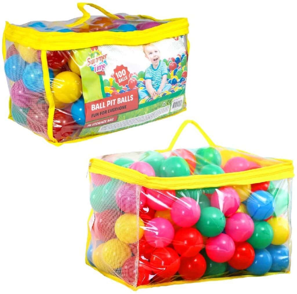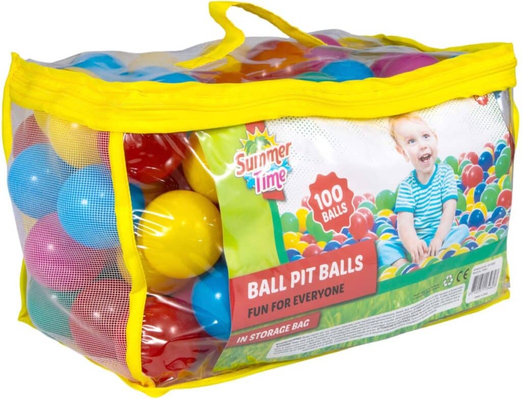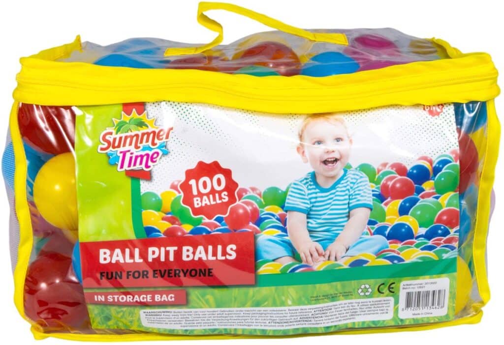 Deze handige tas is gevuld met maar liefst 100 Summertime speelballen voor in de ballenbak. De ballen hebben een diameter van 6 centimeter. Verpakt in tas met inlay. Geschikt voor kinderen vanaf 6 maanden.