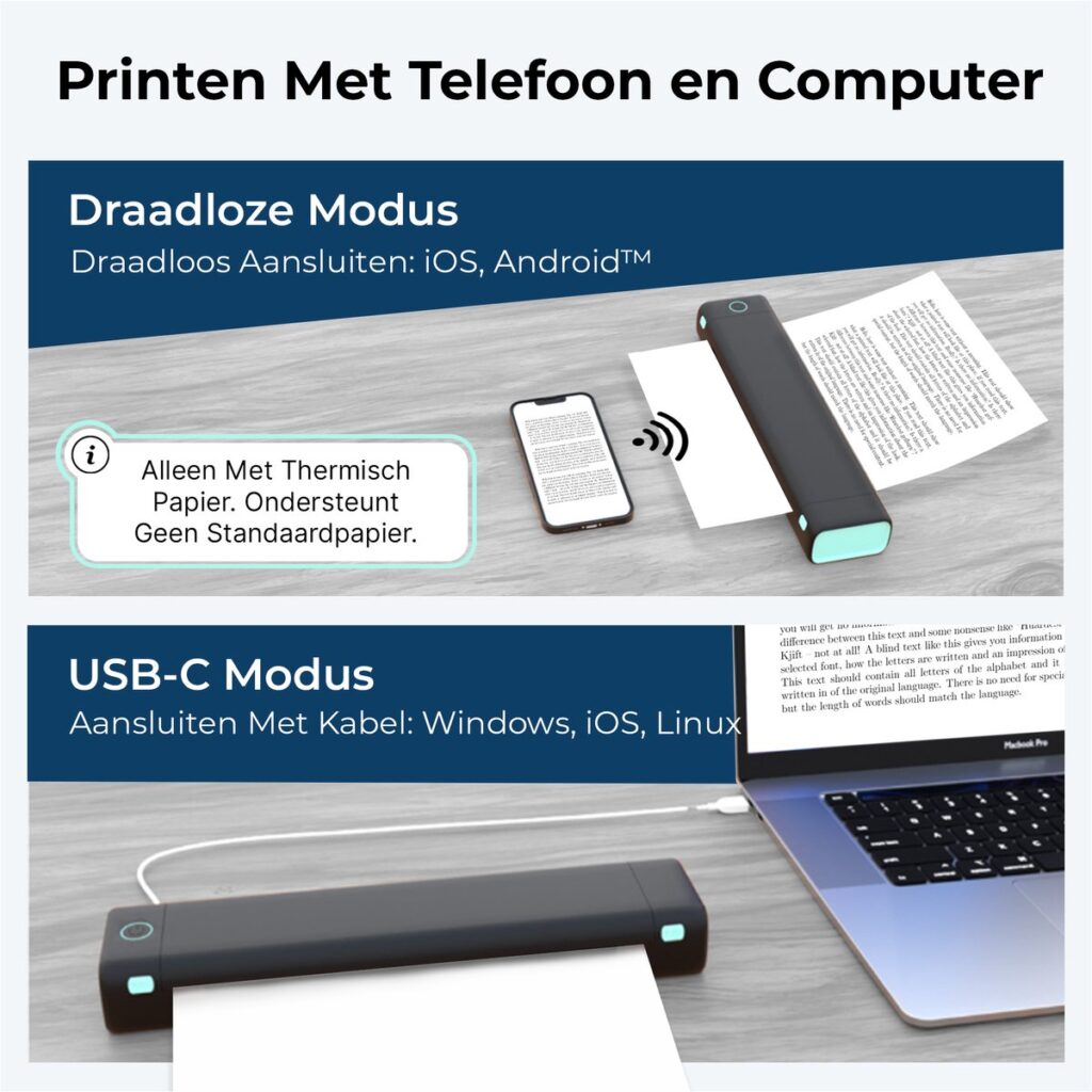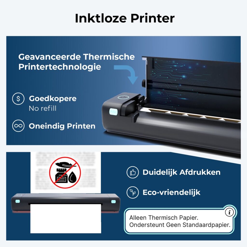 De AgoDeo Thermische A4 Printer is dé slimme oplossing voor iedereen die wil printen zonder gedoe met inkt, kabels of grote printers. Of je nu tattoo-stencils wilt maken, verzendlabels moet printen, studiemateriaal nodig hebt of onderweg documenten wilt afdrukken – met deze draagbare Bluetooth printer kan het allemaal.