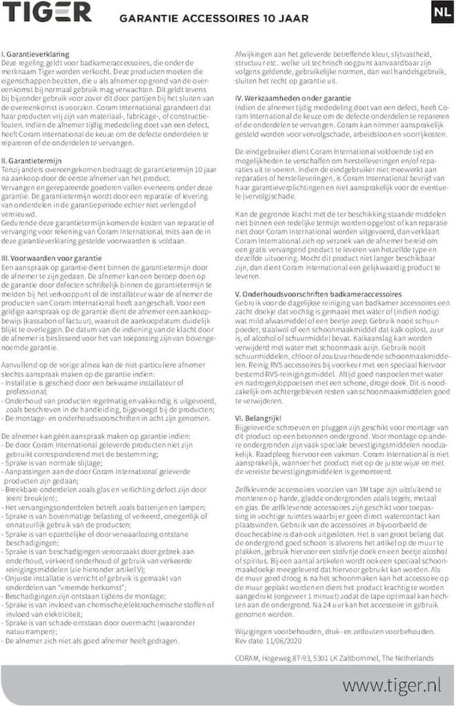 Let op! Het Colar planchet is niet geschikt voor gebruik in of rond de douchecabine waarbij direct water contact mogelijk is.