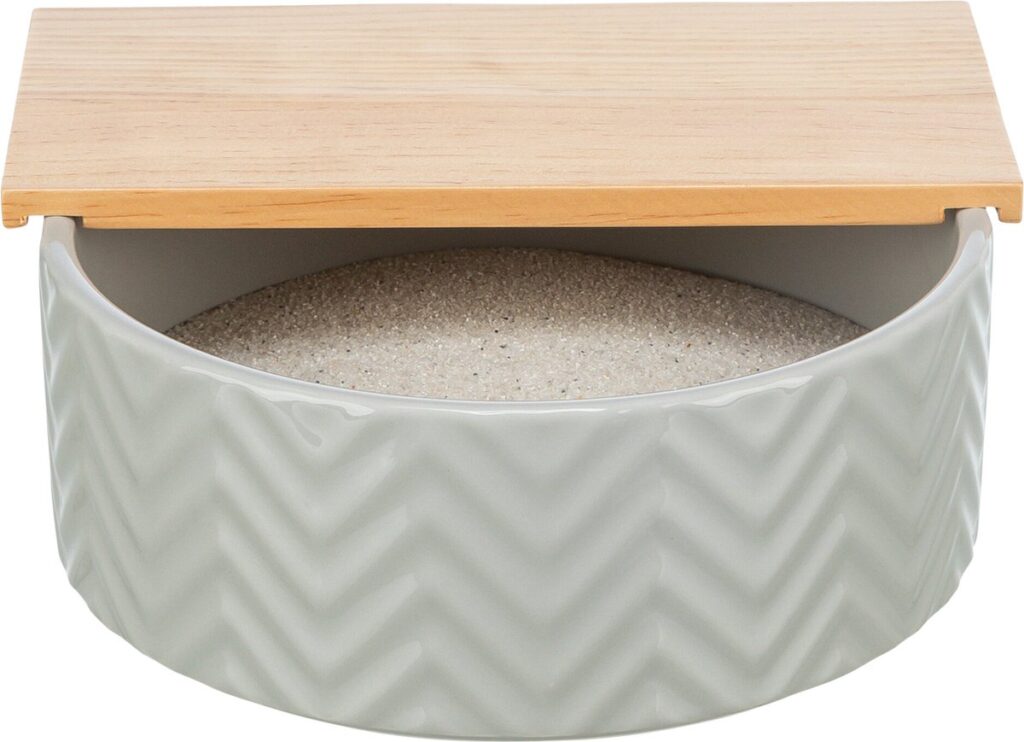 De Trixie Zandbad Met Platform Muizen/Hamsters Keramiek/Hout is een verzorgingsaccessoire die speciaal is ontworpen om de nagel- en lichaamsverzorging van jouw kleine knaagdier te bevorderen. Het afneembare platform biedt een beschermde plek voor jouw huisdier, zodat ze zich veilig kunnen voelen terwijl ze hun verzorgingsroutine uitvoeren. Gemaakt van keramiek en hout, wat zorgt voor een stevige en aantrekkelijke uitstraling die past in elke kooi.