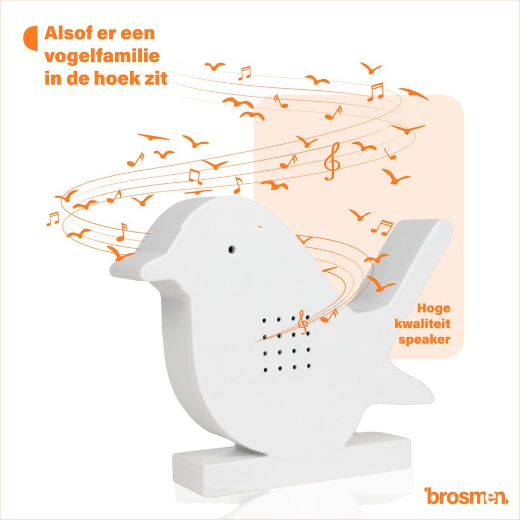 De Bird speelt na het detecteren 60 seconden lang ontspannende vogelgeluiden.
