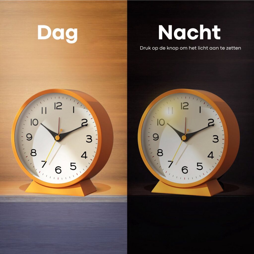 Dankzij de sluipende secondewijzer van de Tyme wekker kun je ongestoord slapen, zonder het getik van de klok. Het stille mechanisme zorgt voor een rustige nachtrust, terwijl het luide alarm ervoor zorgt dat je altijd op tijd wakker wordt.