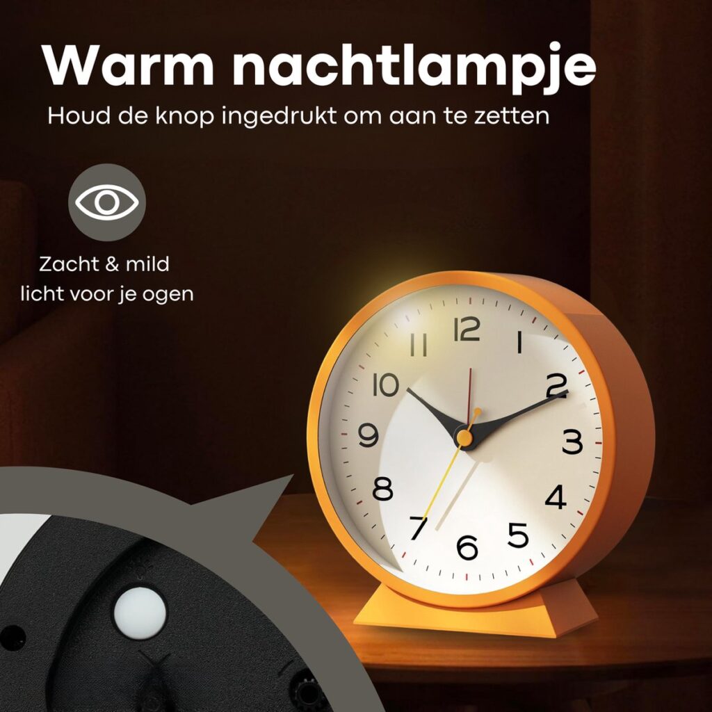 Het handige lampje van de Tyme wekker analoog biedt discreet licht om de tijd af te lezen zonder jezelf of je partner te storen. Het lampje gaat alleen aan wanneer je het nodig hebt, waardoor je ongestoord kunt blijven slapen.