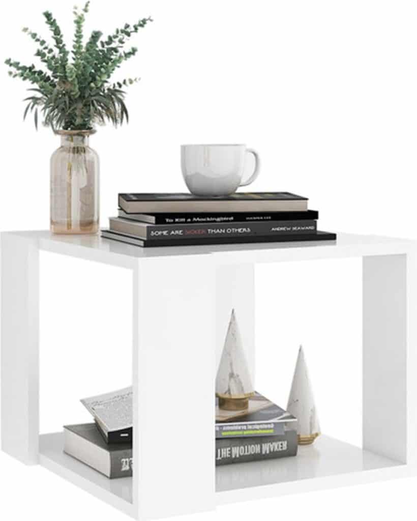 Het tafelblad biedt een veilig oppervlak om snacks, drankjes, vazen, fruitschalen en decoratieve ornamenten op te plaatsen. Deze tafel houdt je leefruimte opgeruimd dankzij het opbergschap. Hij is perfect voor het plaatsen van boeken, tijdschriften en kleine voorwerpen die je binnen handbereik wilt houden. Bovendien is het tafeltje gemakkelijk schoon te maken met een vochtige doek.